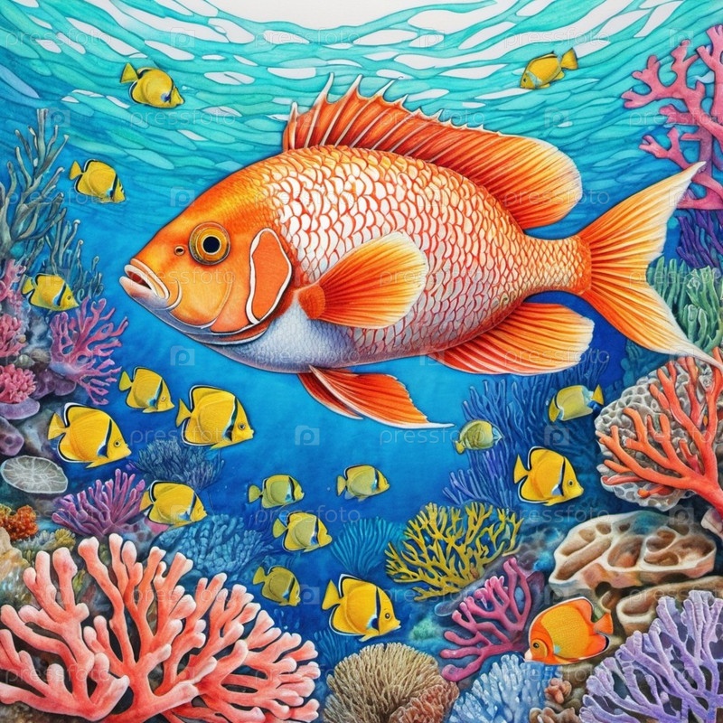 Яркие оранжево-бело-желто-красные рифовые рыбы плавают через коралловый риф. Солнечные лучи пронзают морскую воду. Разнообразие животных. Гидросфера экологии. Антропогенный фактор, влияющий на гибель коралловых рифов. ИИ