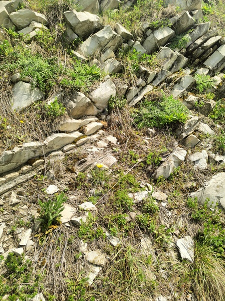 Скалистый склон с зеленой растительностью, естественным фоном, текстурированными обоями