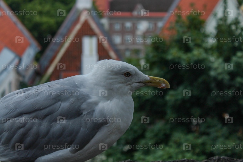 Серебристая чайка в средневековом городе