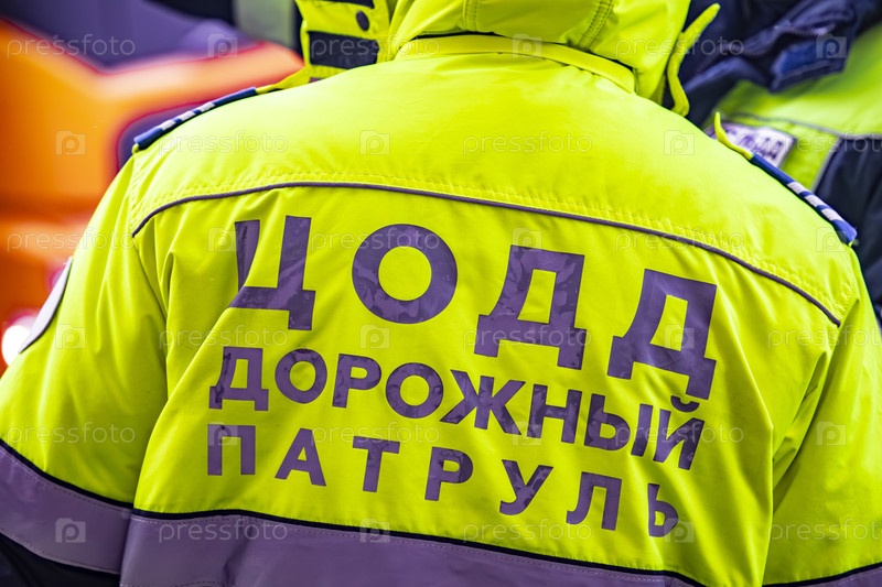 Надпись «ЦОДД. Дорожный патруль» на спине светоотражающей куртки
