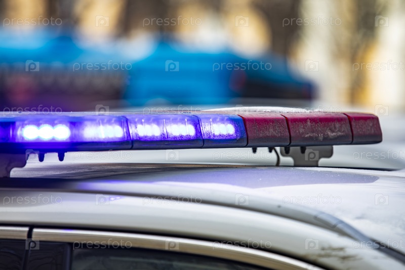 Проблесковый маячок на крыше полицейского автомобиля ДПС