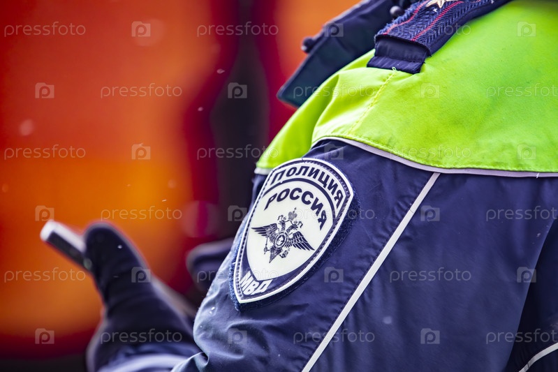 Шеврон «Полиция России МВД» на форме сотрудника ДПС, крупный план