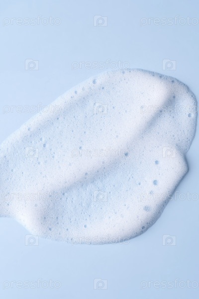 Текстура пены для чистки кожи. Мыло, шампунь, очищающие пузырьки мусса наблюдают на синем цветном фоне. Косметика для мытья лица