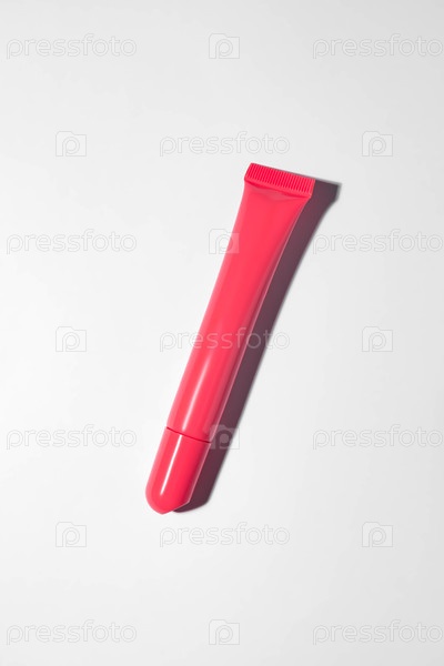 Липовый блеск или оттенок или бальзам для губ розового цвета в образце пластиковой трубки на изолированном белом фоне