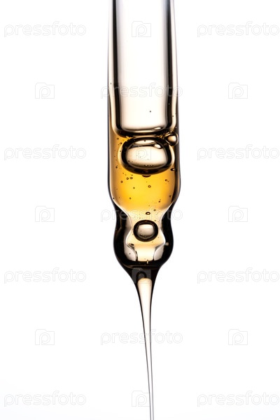 Пипетка с сывороткой, гелем, маслом или другим косметическим продуктом с падающей каплей. Макро-ближение
