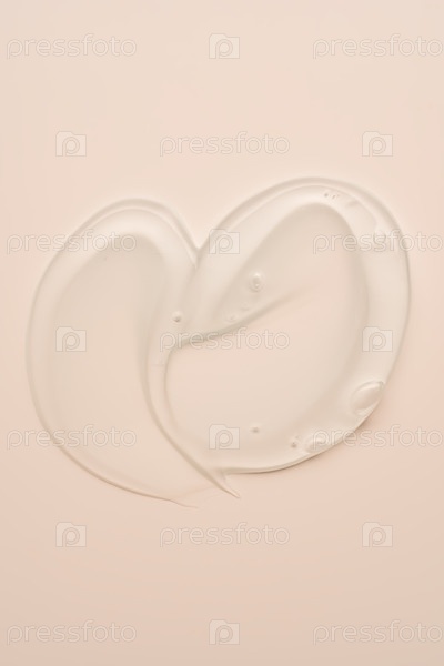 Близкий снимок жидкого косметического геля или сывороточного макияжа с глянцевой, блестящей текстурой на гладком бежевом фоне