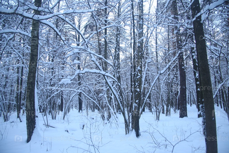 Зимний пейзаж леса с деревьями и снегом