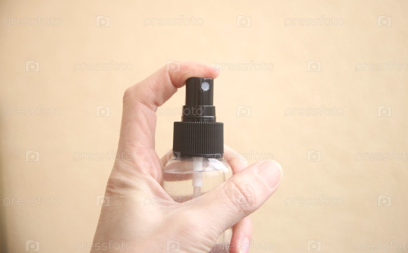 Средство для уборки во флаконе с распылителем в руке