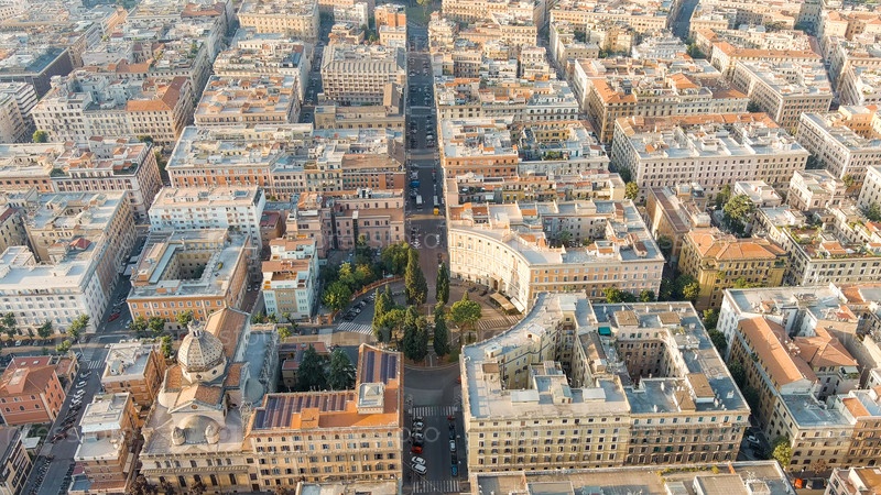 Рим, Италия. Река Тибр. Кастель Сант Анджело. Утренние часы, вид с воздуха