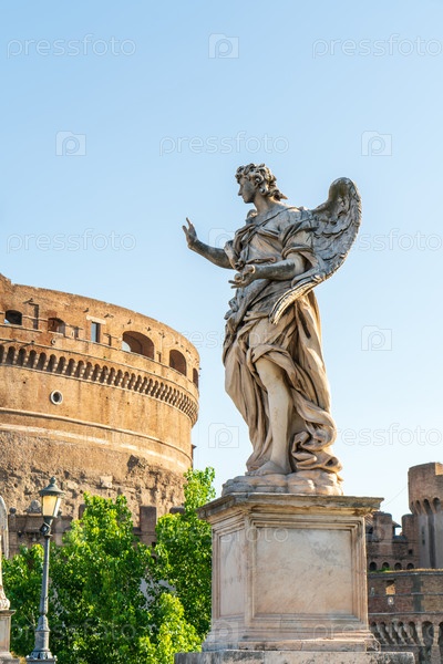 Рим, Италия. Фигура ангела на Понте Сант-Анджело (Мост Илиева). Утренние часы