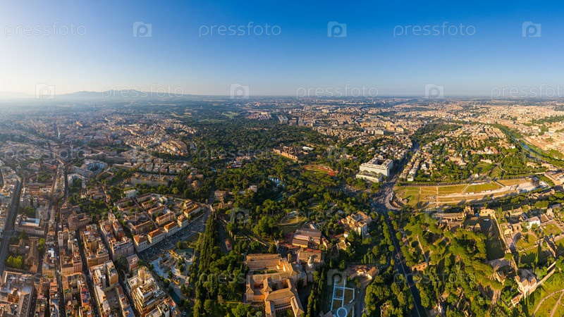 Рим, Италия. Исторический центр. Город у тебя под рукой. Панорама города в летнее утро. Вид с воздуха