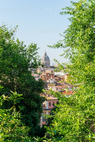 Рим, Италия. Купол базилики святых Амброджио и Карло аль-Корсо. Панорама Рима. Утренние часы