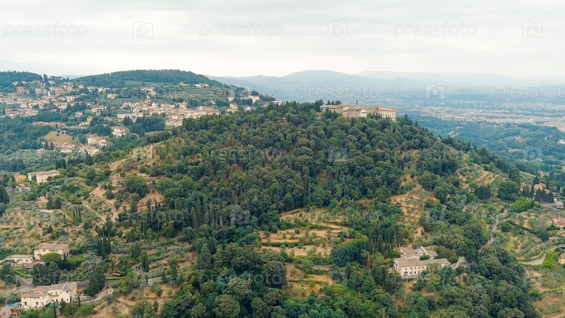 Флоренция, Италия. Монастырь Сан Франческо. Монастырь на горе. Лето, вид с воздуха