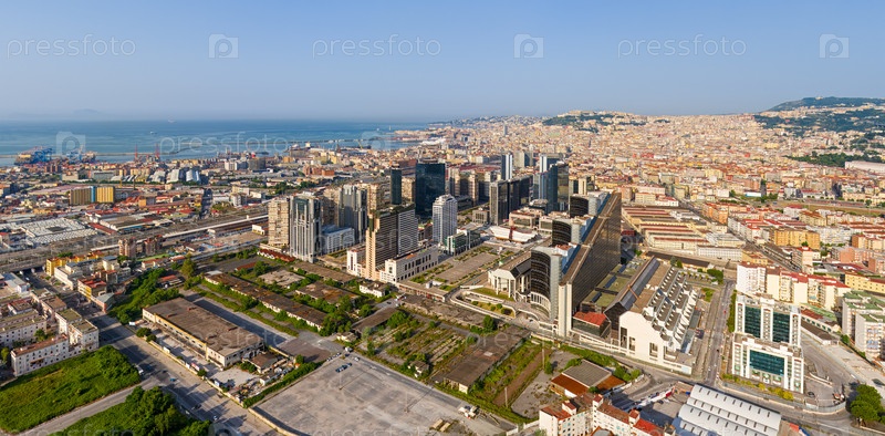 Неаполь, Италия. Centro direzionale — деловой район в Неаполе. Панорама города в летний день. Солнечная погода. Вид с воздуха
