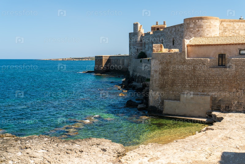 Сиракузы, Сицилия, Италия. Castello Maniace — военная крепость 13 века. Солнечный летний день
