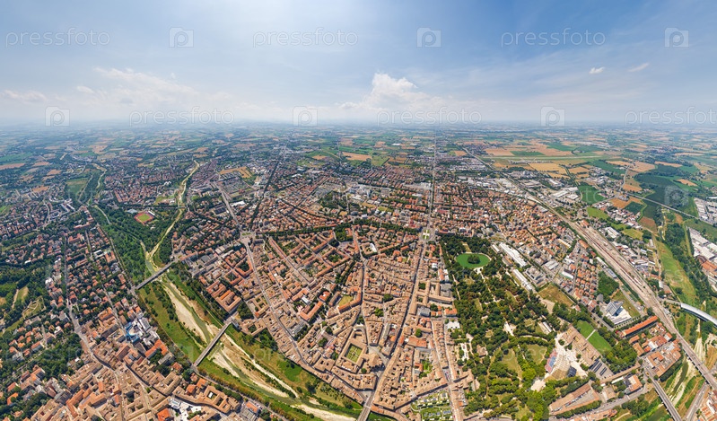 Парма, Италия. Исторический центр. Панорама города в летний день. Солнечная погода. Вид с воздуха
