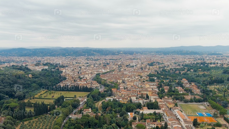 Флоренция, Италия. Общий вид на город в облачную погоду. Лето, вид с воздуха