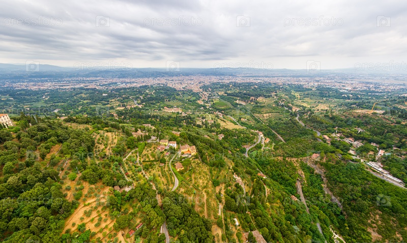 Флоренция, Италия. Общий вид на город в облачный день. Вид с воздуха