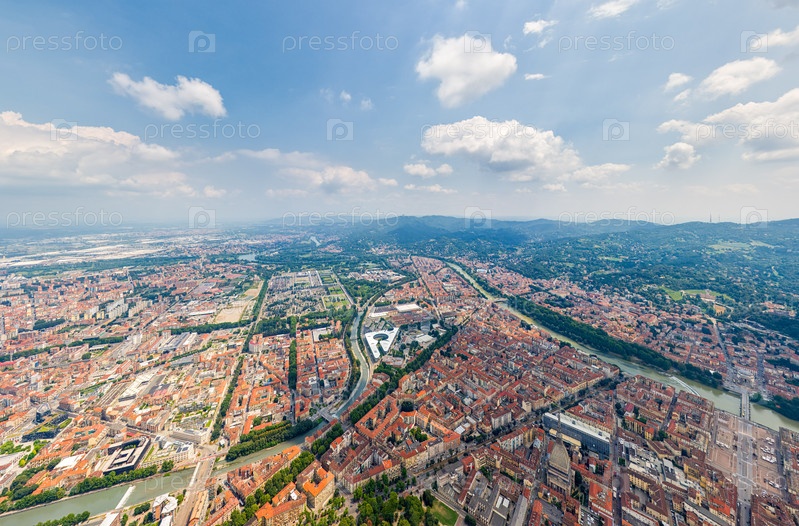 Турин, Италия. Панорама центральной части города. Вид с воздуха