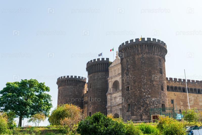 Неаполь, Италия. Кастель Нуово — средневековая крепость. Солнечное летнее утро