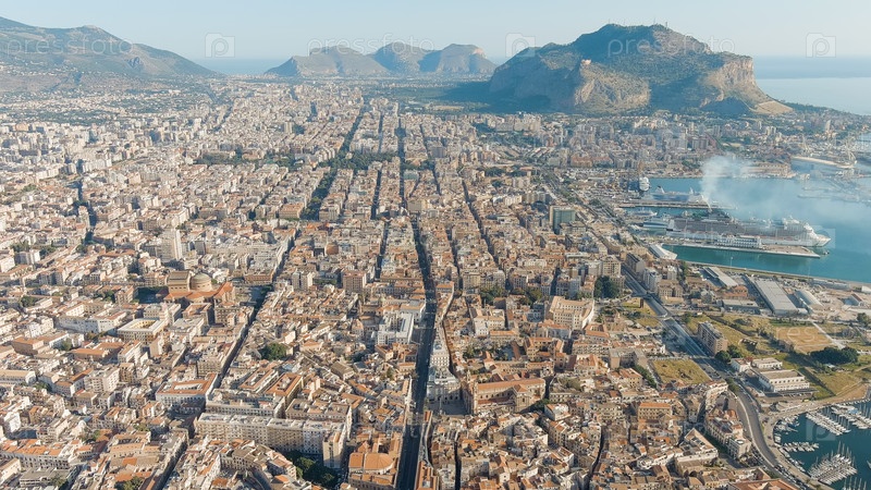 Палермо, Сицилия, Италия. Панорамный вид, Лето. Палермо - портовый город, столица итальянского острова Сицилия, вид с воздуха