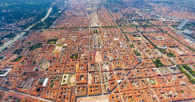 Турин, Италия. Панорама центральной части города. Вид с воздуха