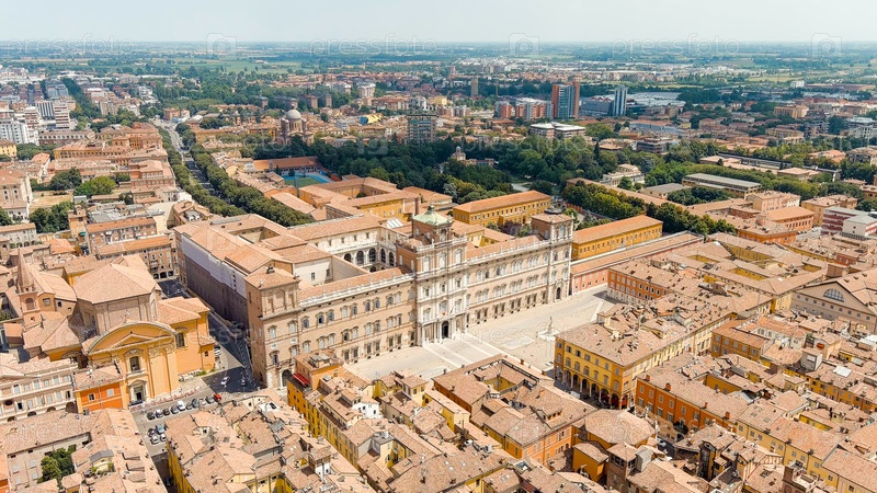 Модена, Италия. Дворец герцога Модены. Исторический центр. Лето, вид с воздуха