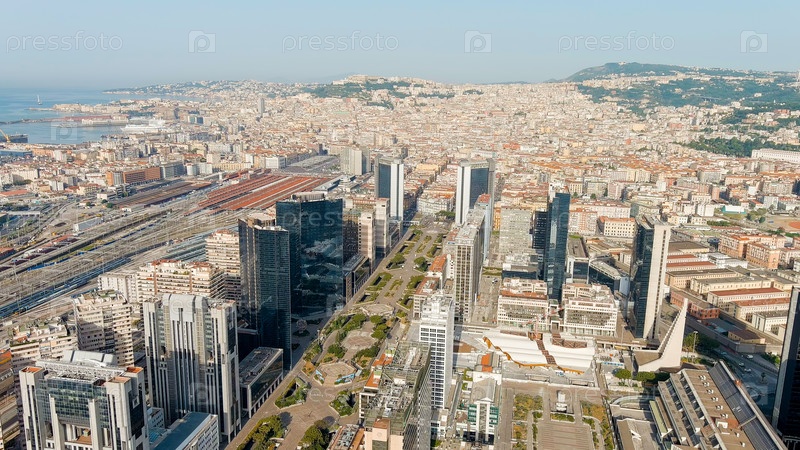 Неаполь, Италия. Centro direzionale - деловой район в Неаполе, Италия, недалеко от центрального вокзала Неаполя, с видом с воздуха
