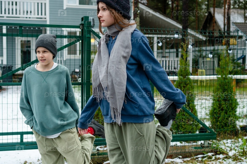 Брат и сестра помогают друг другу растягивать мышцы ног после завершения пробежки. Эта сцена подчеркивает дружбу, поддержку и совместное восстановление, подчеркивая социальные и физические преимущества