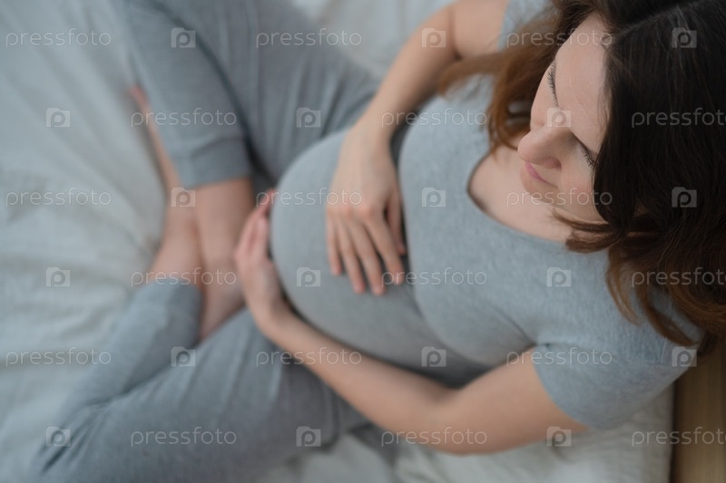 Беременная женщина ласкает детский бугор