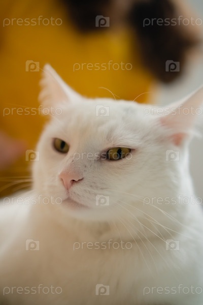 Белая кошка обожает