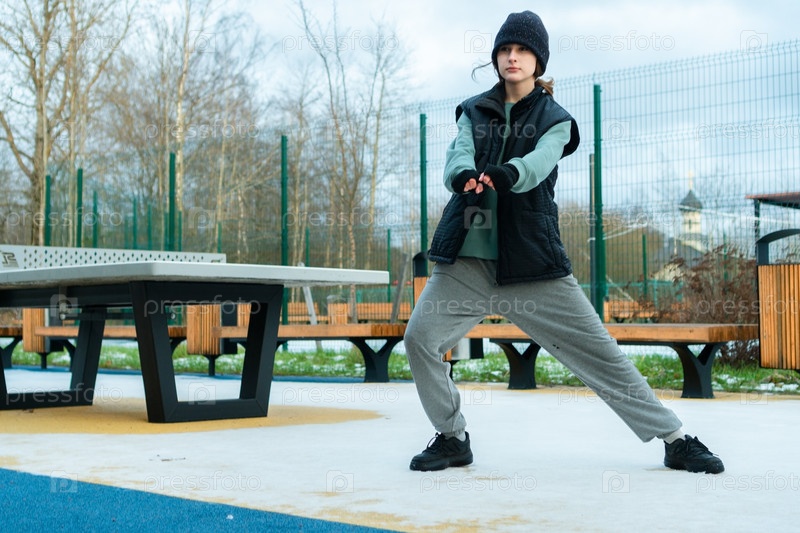 Женщина делает рулоны ног как часть своей тренировки на открытом воздухе. Подчеркивая важность подвижности ног и гибкости суставов для общего физического здоровья