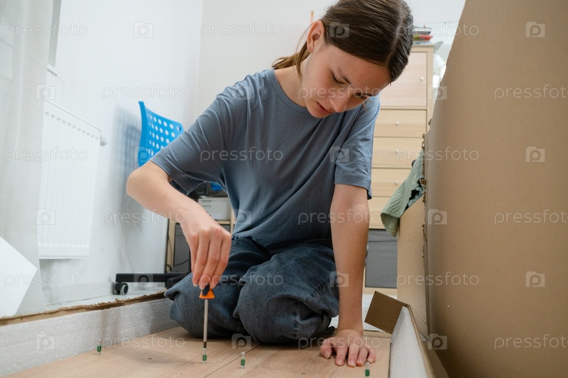 Девочка-подросток собирает гардероб в одиночестве в своей комнате
