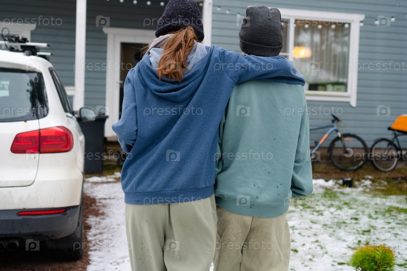 Мальчик-подросток и девочка идут бок о бок по улице после бегового сеанса. Расслабленные, синхронизированные шаги отражают товарищество, фазу охлаждения упражнений,