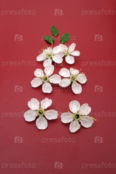 Цветы вишневого дерева (сакуры), изолированные на красном фоне
