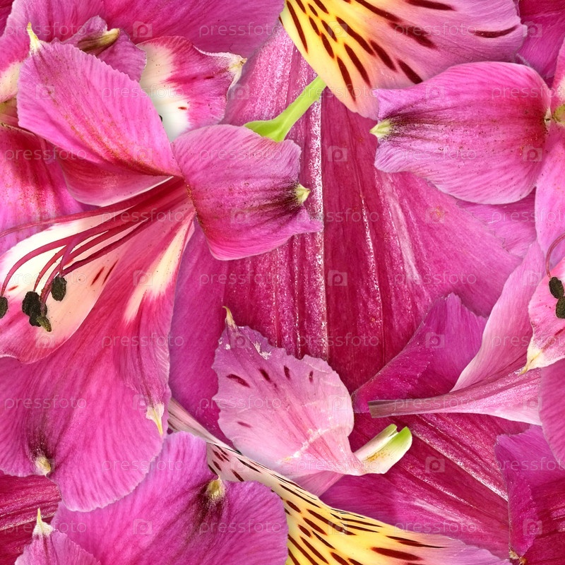 Бесшовный рисунок с розовыми цветами и зелеными листьями альстромерии