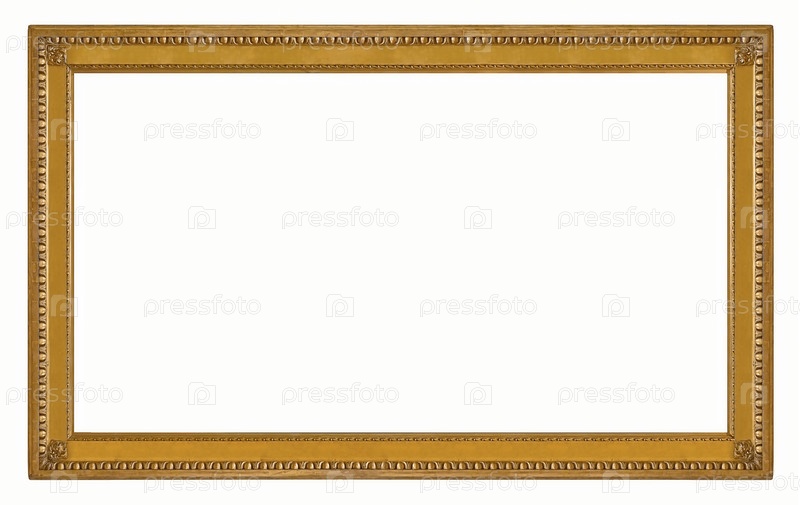 Золотая рама для картин, зеркал или фотографий, изолированных на белом фоне