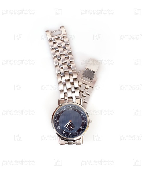 Наручные часы на металлическом ремне, изолированном на белом фоне