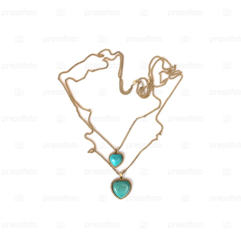 Золотое ожерелье с бирюзовым изолированным на белом фоне