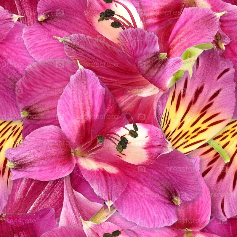 Бесшовный рисунок с розовыми цветами и зелеными листьями альстромерии