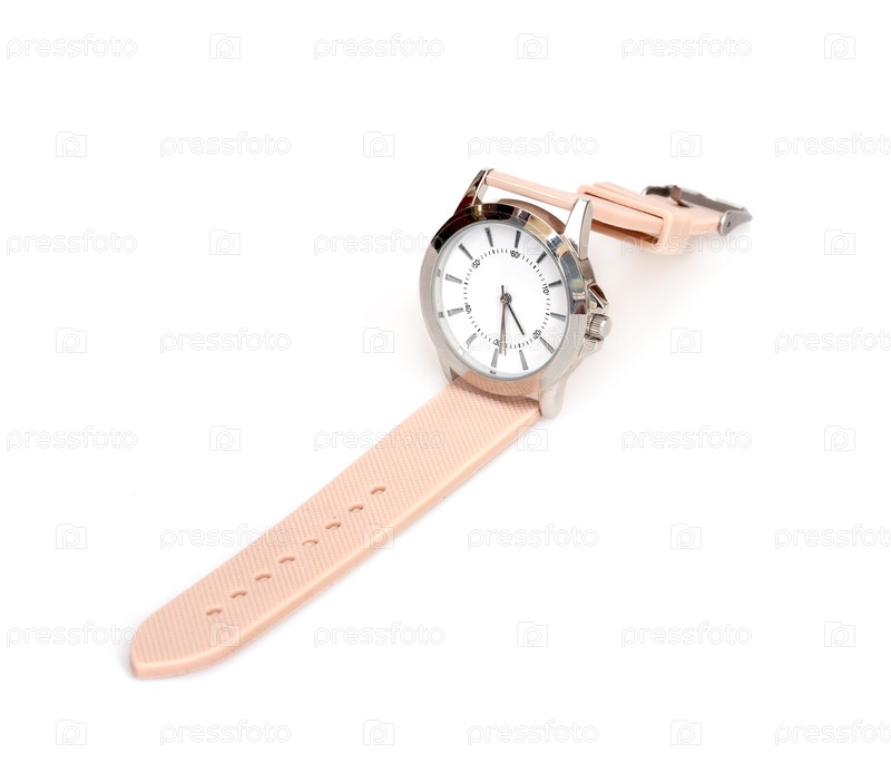 Наручные часы на пластиковом ремне, изолированном на белом фоне