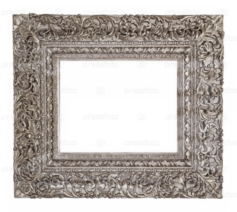 Серебряная рама для картин, зеркал или фотографий, изолированных на белом фоне