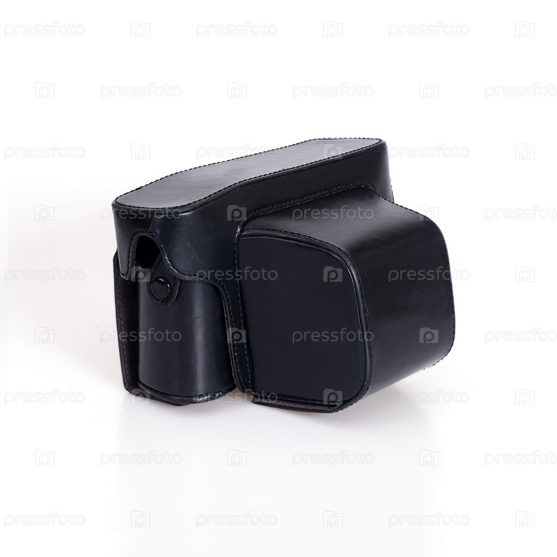 Черный кожаный корпус камеры изолирован на белом фоне