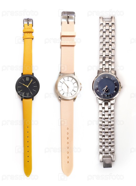 Набор наручных часов, изолированных на белом фоне