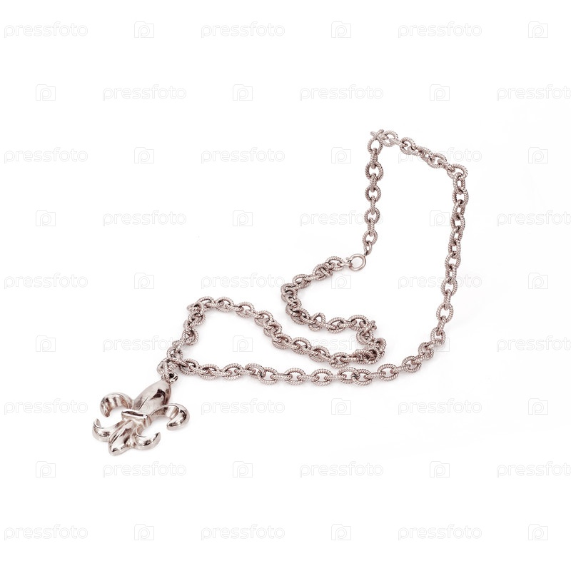 Серебряная цепь с кулоном изолирована на белом фоне