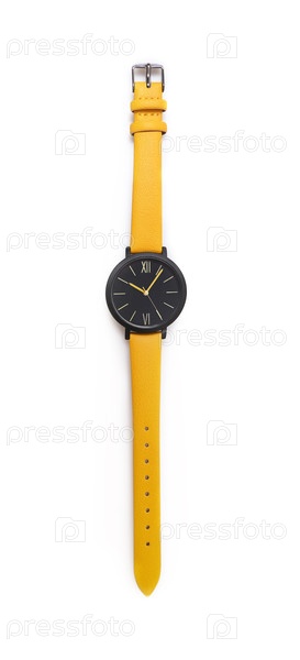 Наручные часы на кожаном ремне изолированы на белом фоне. Элемент дизайна с обрезкой пути