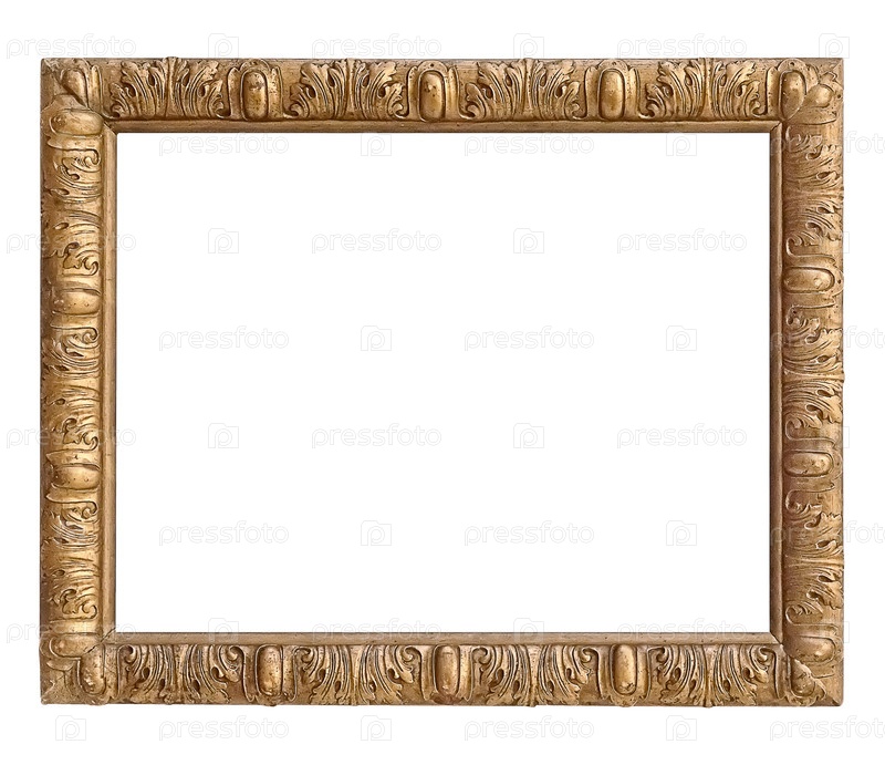 Золотая рама для картин, зеркал или фотографий, изолированных на белом фоне