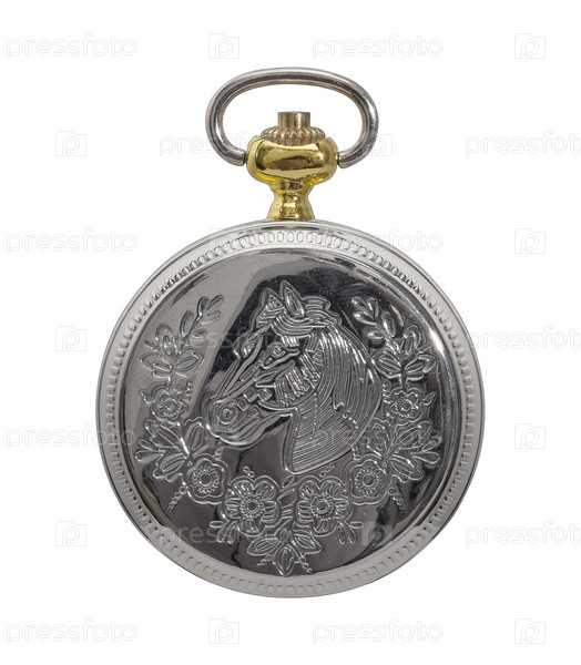 Карманные часы изолированы на белом фоне. Элемент дизайна с обрезкой пути