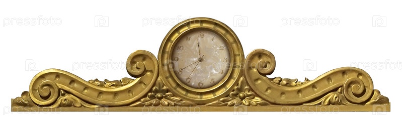 Бронзово-позолоченные каминные часы изолированы на белом фоне. Элемент дизайна с обрезкой пути