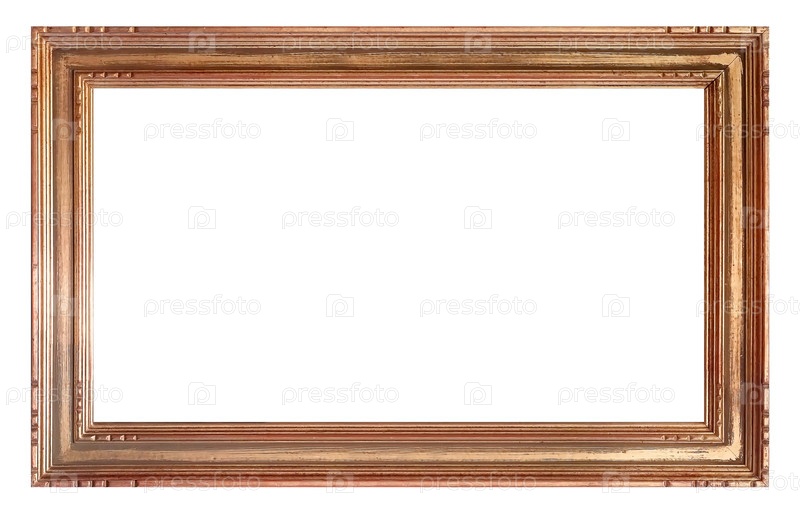 Панорамный золотой каркас для картин, зеркал или фотографий, изолированных на белом фоне